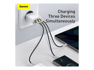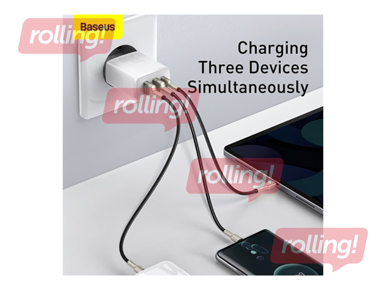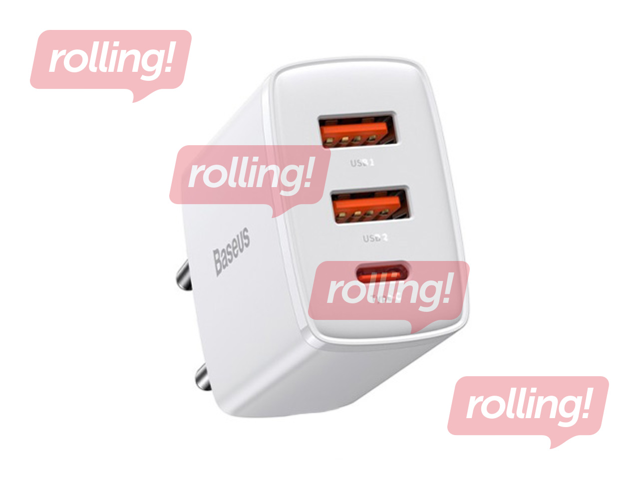 Lādētājs Baseus QC USB Type C + 2x USB, 30W, balts