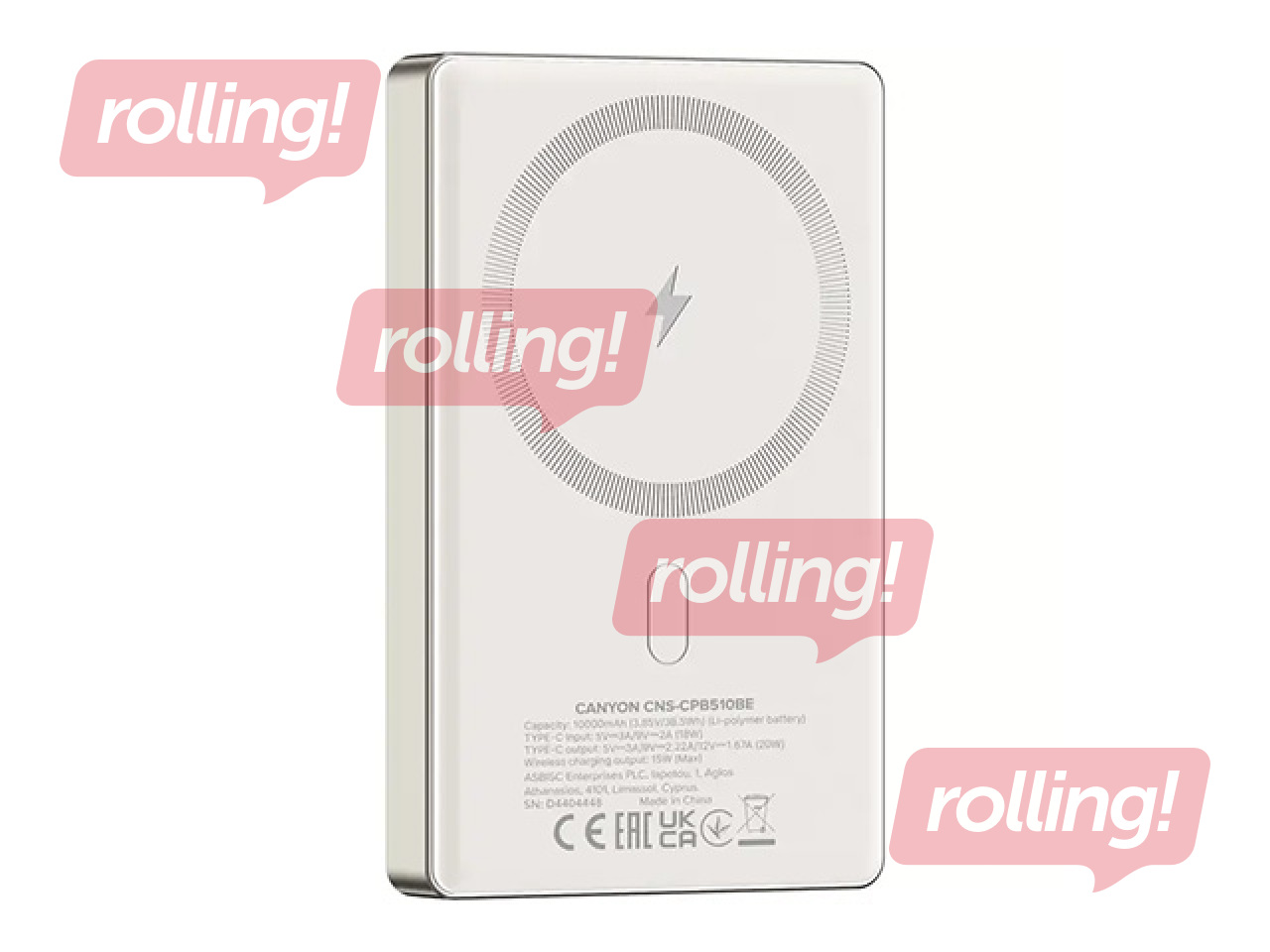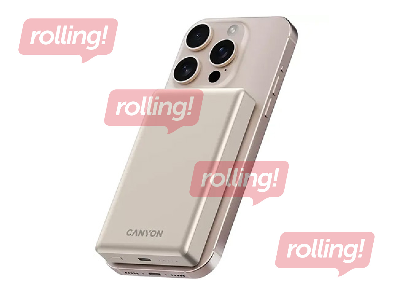 Magnētiskais mobilais lādētājs Canyon OnPower 510 slim MagSafe PD 20W, 10000mAh, bēšs