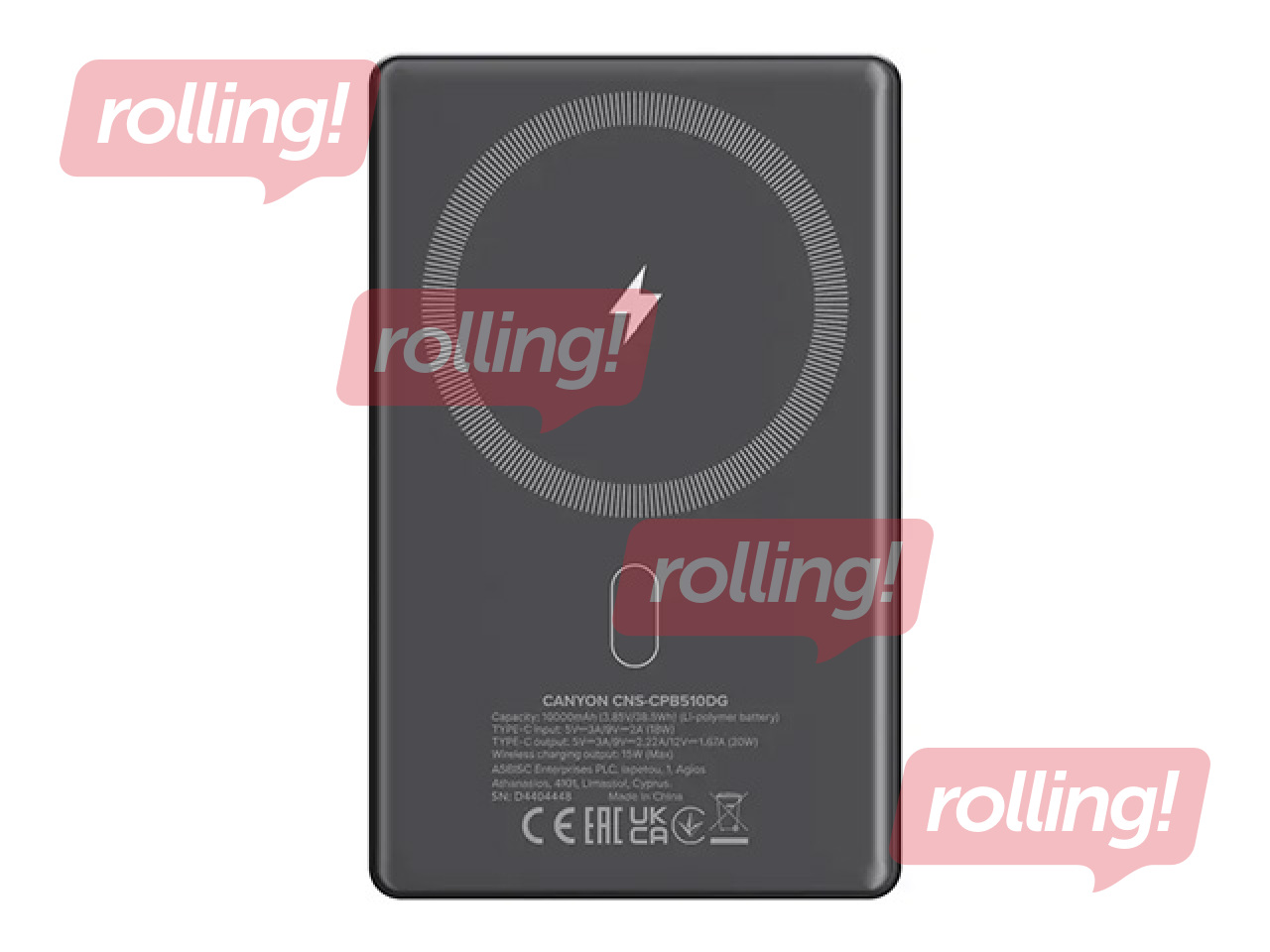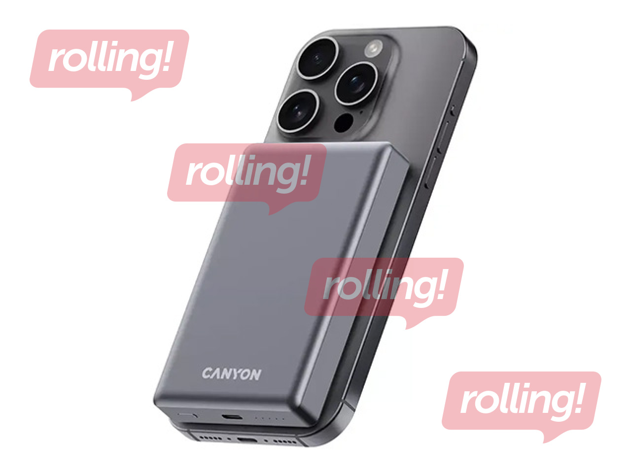 Magnētiskais mobilais lādētājs Canyon, OnPower 510 slim, MagSafe PD 20W, 10000mAh, tumši pelēks