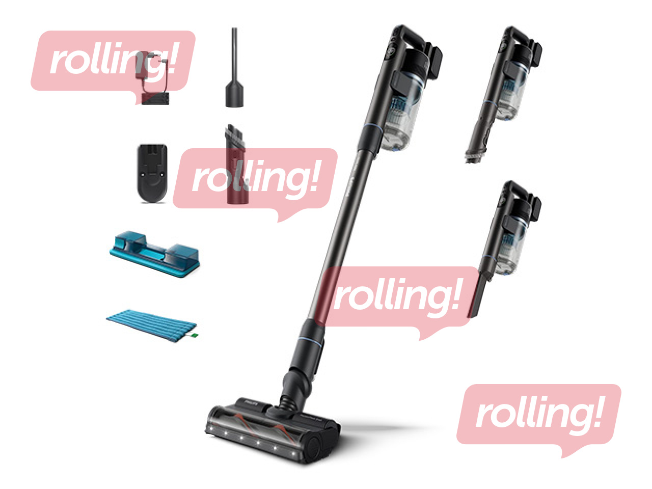 Viegli sasniegt visas vietas, konfigurējot putekļsūcēju atbilstoši savām vajadzībām. Putekļsūcēju var bez pūlēm pārvērst par rokas ierīci un pievienot kādu no piederumiem ar LED, lai tīrīšanas laikā pamanītu ik puteklīti. Mājdzīvnieku spalvu tīrīšanas uzgali var izmantot, lai savāktu garas un smalkas spalvas. Garais uzgalis šauru spraugu tīrīšanai palīdz sasniegt šauras vietas. Kombinēto “divi vienā” tipa uzgali var viegli izmantot kā mīkstu birsti saudzējamu virsmu noslaucīšanai vai platu uzgali šauru spraugu tīrīšanai, lai iztīrītu grūti sasniedzamus kaktus.